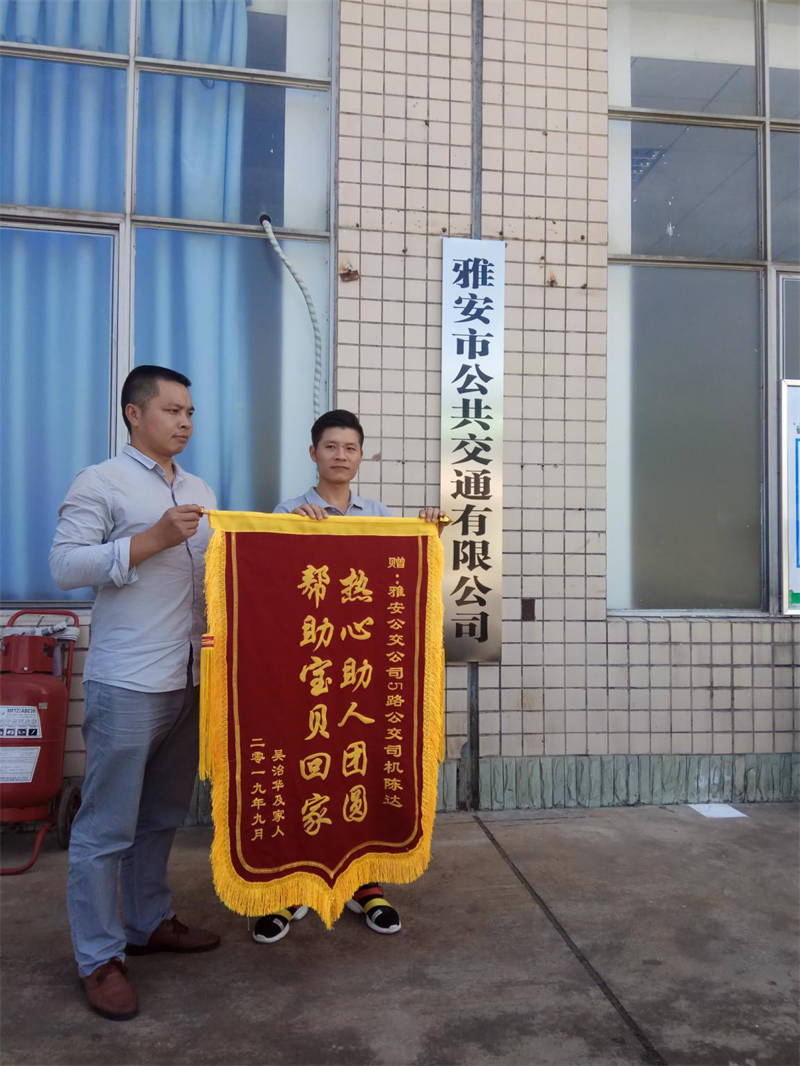 正是由于陳達(dá)細(xì)致耐心的服務(wù)和面對(duì)突發(fā)事件的沉穩(wěn)冷靜,避免了該起兒童走失事件發(fā)展成更大的悲劇,挽救 了一個(gè)家庭。9月20日,為了表達(dá)感激之情,男童的父親吳治華來(lái)到公交公司將一面寫有“熱心助人團(tuán)圓,幫助寶貝回家”的錦旗送到了陳達(dá)手上。