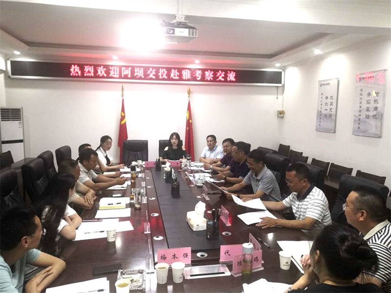 8月11日至12日,四川阿壩交通建設(shè)投資有限責(zé)任公司黨委書記、董事長李毅,黨委副書記、總經(jīng)理詹永康率隊(duì)到雅安考察交流交通建設(shè)相關(guān)事宜。雅安市交通運(yùn)輸局黨組書記、局長余云峰,黨組成員、副局長趙飛勇;雅安交建集團(tuán)黨委書記、董事長漆家華,黨委副書記、總經(jīng)理羅倫全等先后陪同考察、座談交流。
