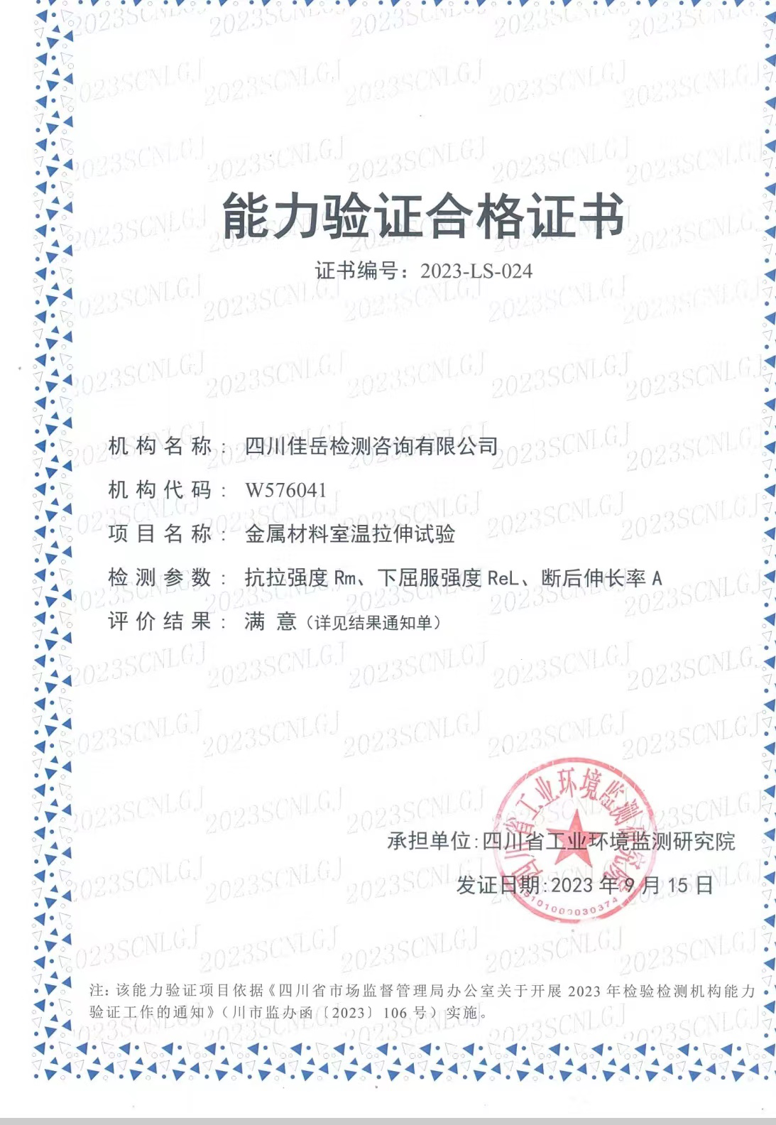 近日,四川省市場監(jiān)督管理局公布2023年能力驗(yàn)證結(jié)果,雅安交建集團(tuán)所屬四川佳岳檢測咨詢公司參加的保溫材料導(dǎo)熱系數(shù)檢測、室內(nèi)環(huán)境污染物甲醛檢測、水泥物理性能檢測、金屬材料室溫拉伸試驗(yàn)等5項(xiàng)能力驗(yàn)證,評價結(jié)果均為“滿意”。