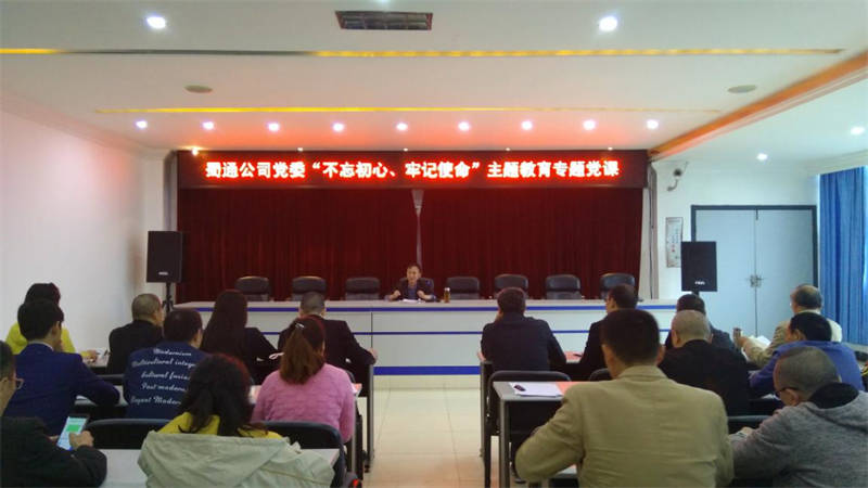 10月24日,公司黨委“不忘初心、牢記使命”主題教育專題黨課在蜀通公司機(jī)關(guān)大會(huì)議室舉行,公司黨委書記吳誠(chéng)向蜀通公司、公交公司黨員講專題黨課。公司黨支部書記、和黨員代表共35人參加。