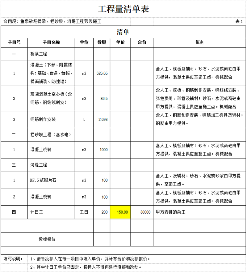 現(xiàn)將魚泉砂場橋梁、攔砂壩、河堤工程勞務(wù)施工招標文件,作如下修改(補充):