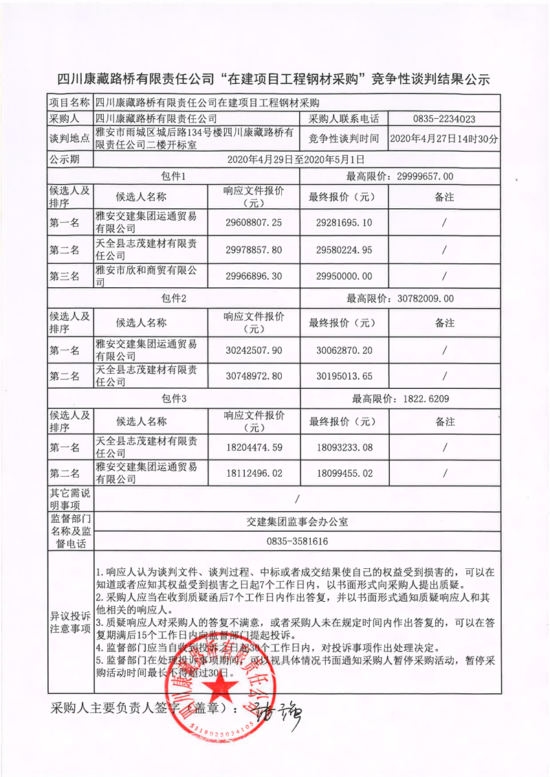 四川康藏路橋有限責(zé)任公司“在建項(xiàng)目工程鋼材采購”競(jìng)爭(zhēng)性談判結(jié)果公示
