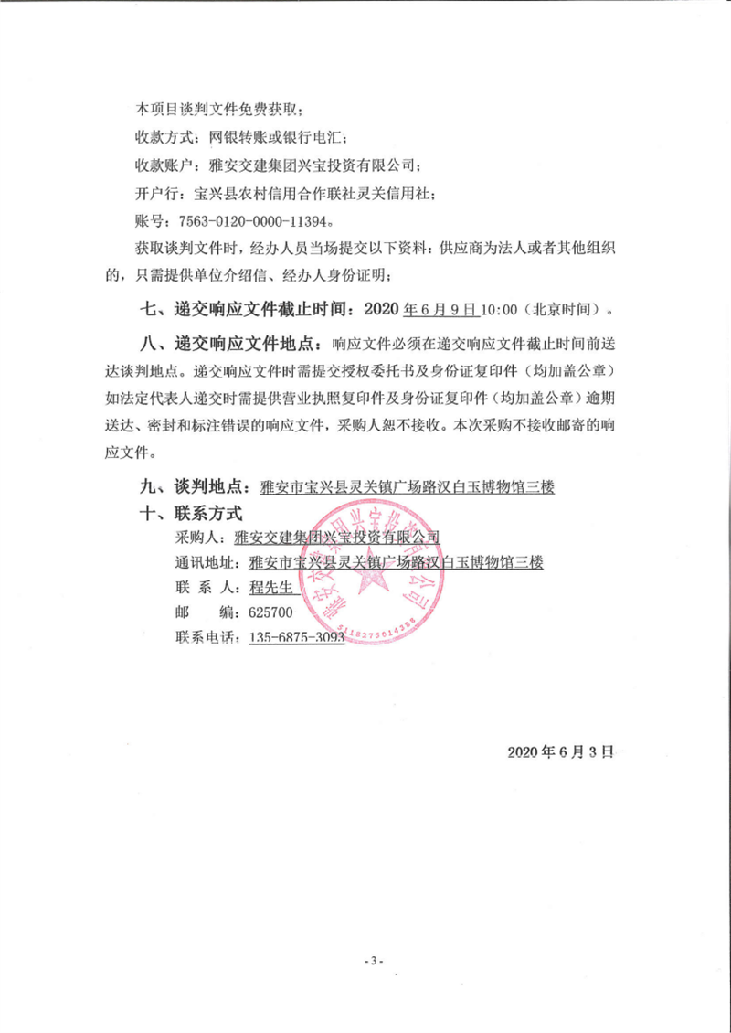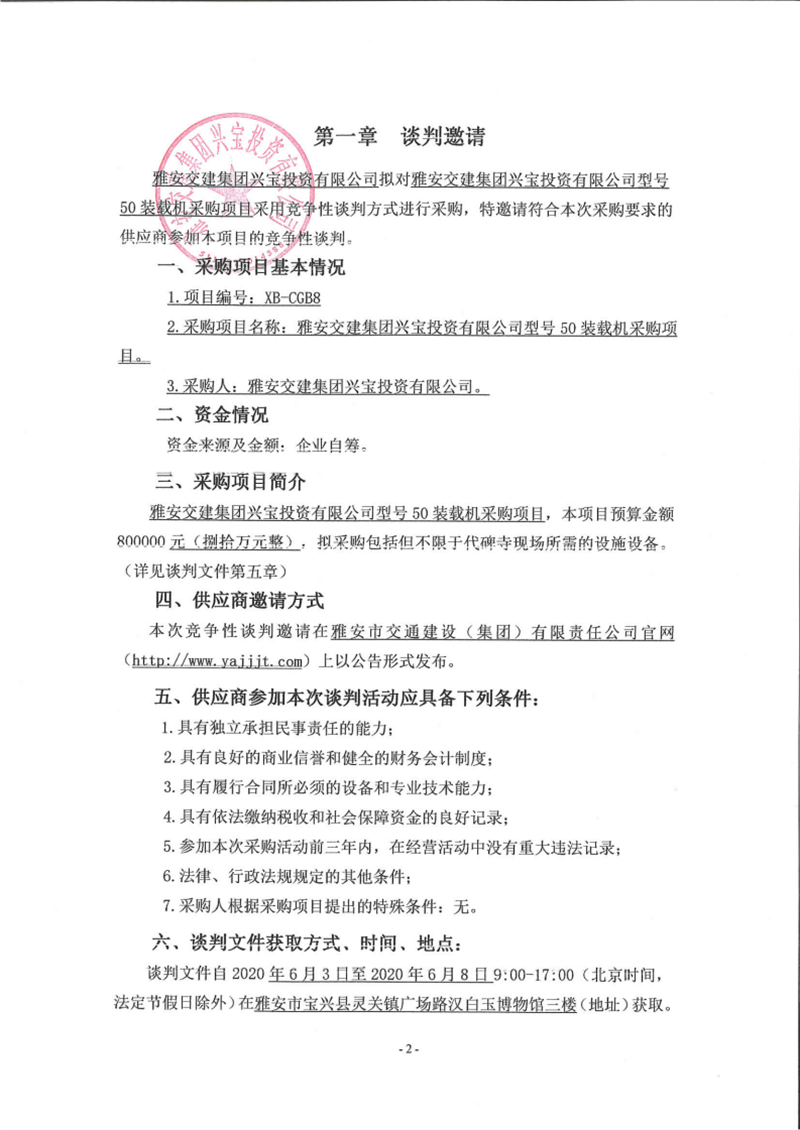 雅安交建集團(tuán)興寶投資有限公司型號(hào)50裝載機(jī)采購項(xiàng)目(第二次)競(jìng)爭(zhēng)性談判公告