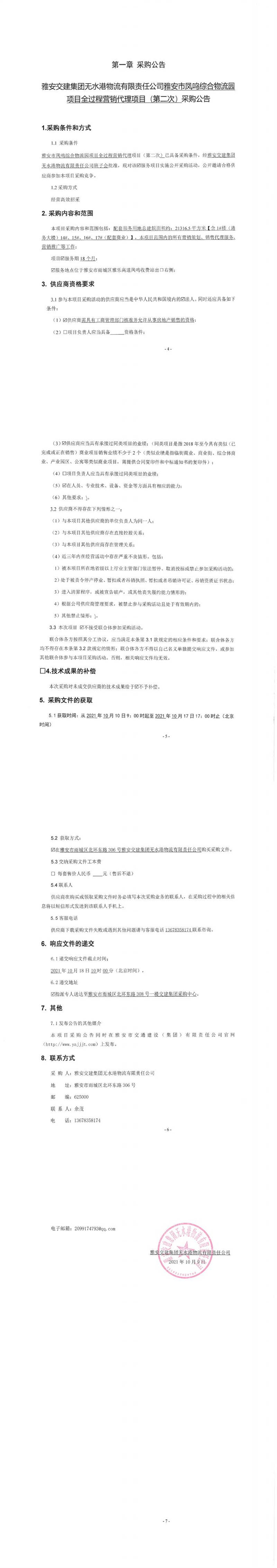 雅安交建集團(tuán)無水港物流有限責(zé)任公司雅安市鳳鳴綜合物流園項目全過程營銷代理項目(第二次)采購公告