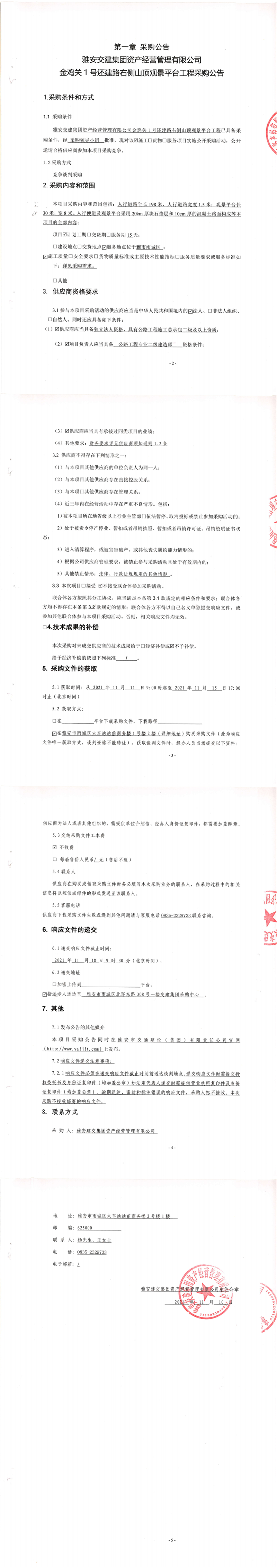 雅安交建集團資產經(jīng)營管理有限公司金雞關1號還建路右側山頂觀景平臺工程采購公告