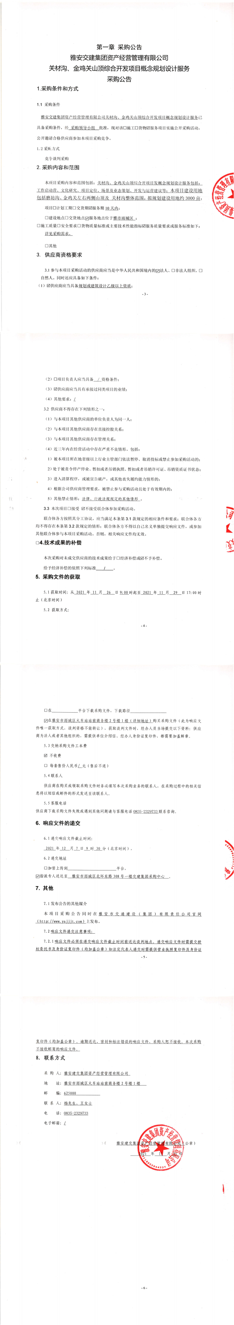 雅安交建集團資產(chǎn)經(jīng)營管理有限公司關(guān)材溝、金雞關(guān)山頂綜合開發(fā)項目概念規(guī)劃設(shè)計服務(wù)采購公告