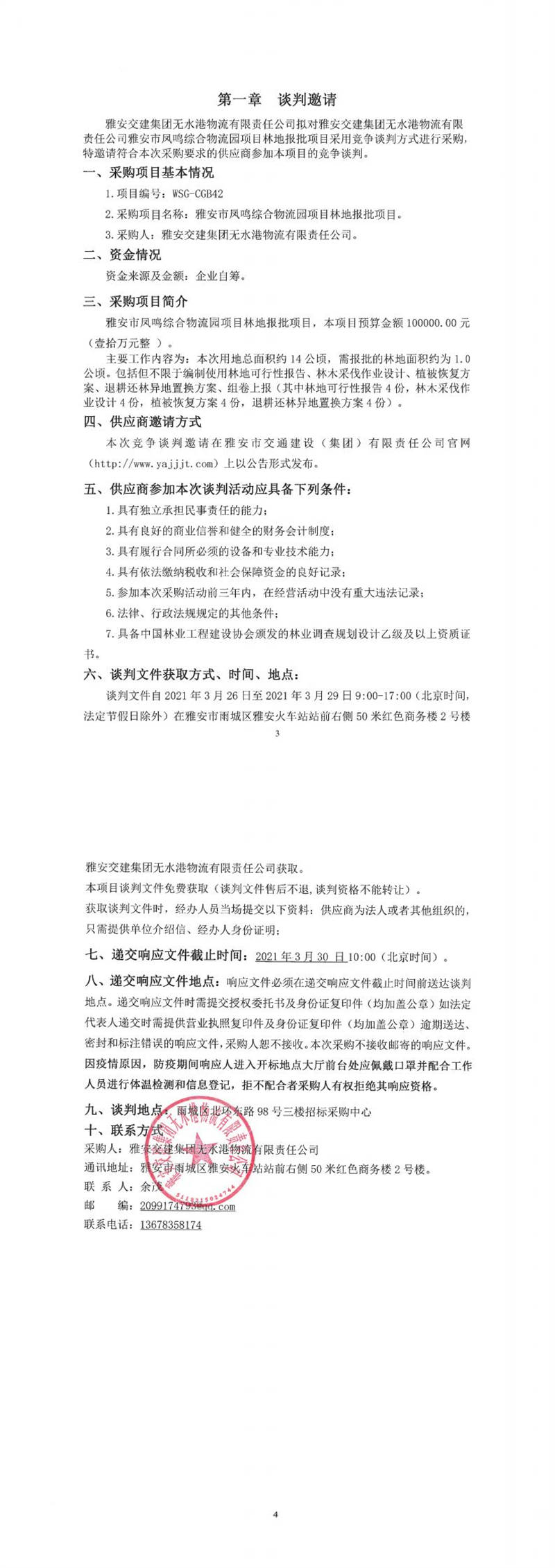 雅安交建集團(tuán)無水港物流有限責(zé)任公司雅安市鳳鳴綜合物流園項(xiàng)目林地報(bào)批項(xiàng)目競(jìng)爭(zhēng)談判公告
