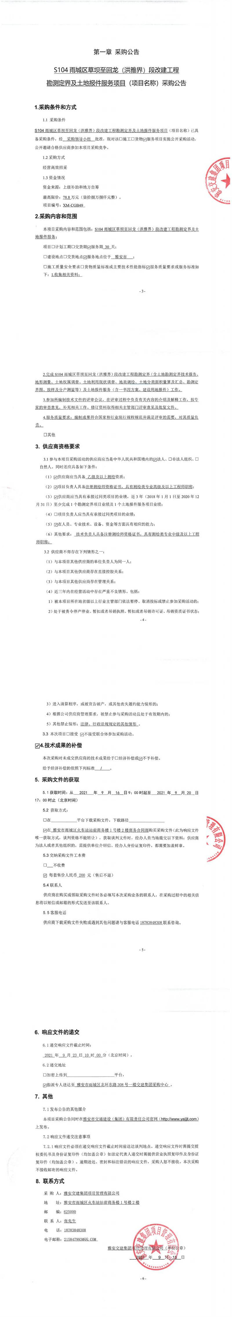 雅安交建集團項目管理有限公司S104雨城區(qū)草壩至回龍(洪雅界)段改建工程勘測定界及土地報件服務項目采購公告