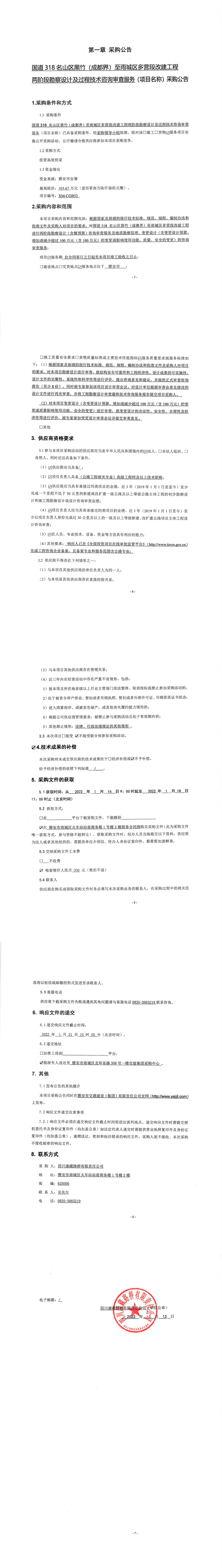 四川康藏路橋有限責(zé)任公司國(guó)道318名山區(qū)黑竹(成都界)至雨城區(qū)多營(yíng)段改建工程兩階段勘察設(shè)計(jì)及過程技術(shù)咨詢審查服務(wù)采購公告