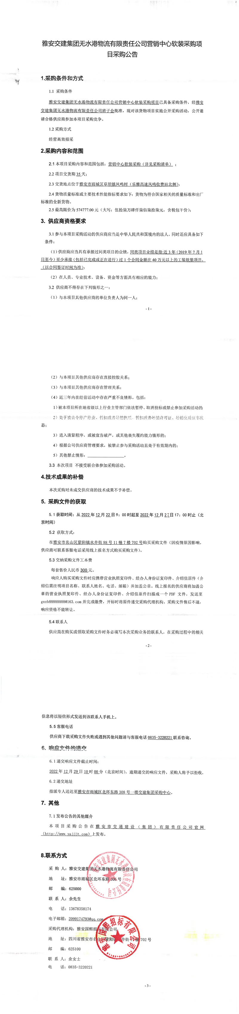 雅安交建集團(tuán)無水港物流有限責(zé)任公司營銷中心軟裝采購項(xiàng)目采購公告