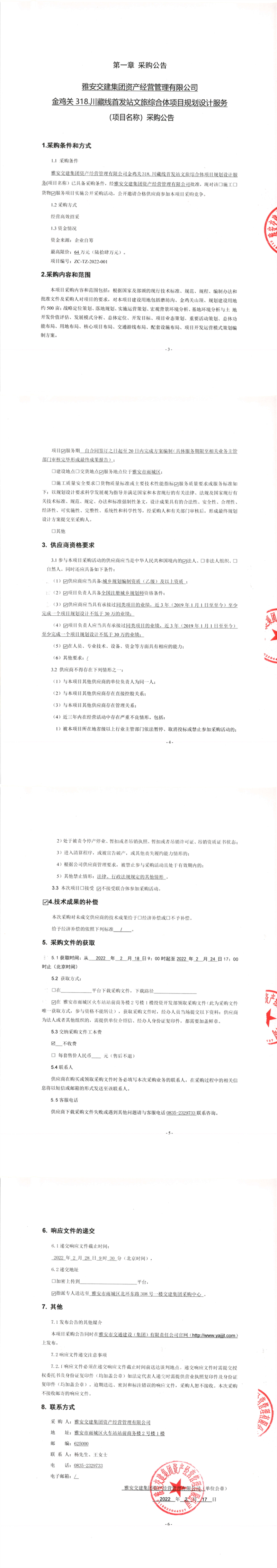 雅安交建集團(tuán)資產(chǎn)經(jīng)營管理有限公司金雞關(guān)318.川藏線首發(fā)站文旅綜合體項(xiàng)目規(guī)劃設(shè)計(jì)服務(wù)采購公告