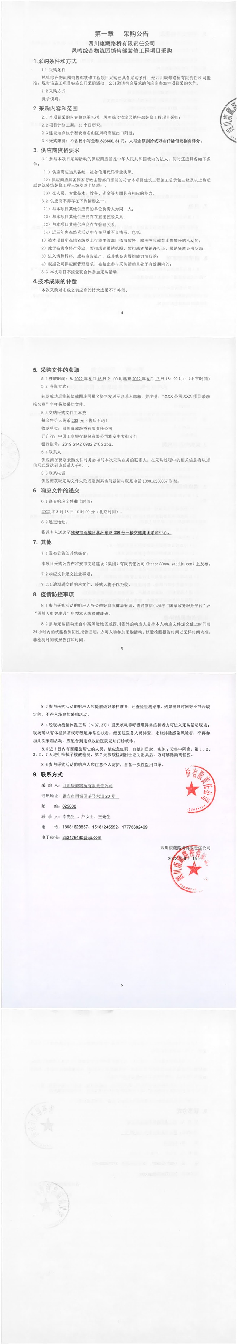 四川康藏路橋有限責任公司鳳鳴綜合物流園銷售部裝修工程項目采購公告