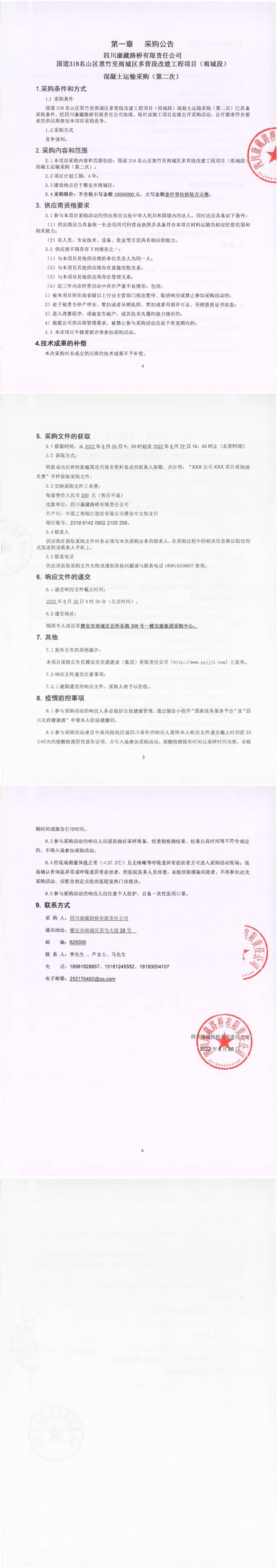 四川康藏路橋有限責(zé)任公司國道318名山區(qū)黑竹至雨城區(qū)多營段改建工程項目(雨城段)混凝土運(yùn)輸(第二次)采購公告