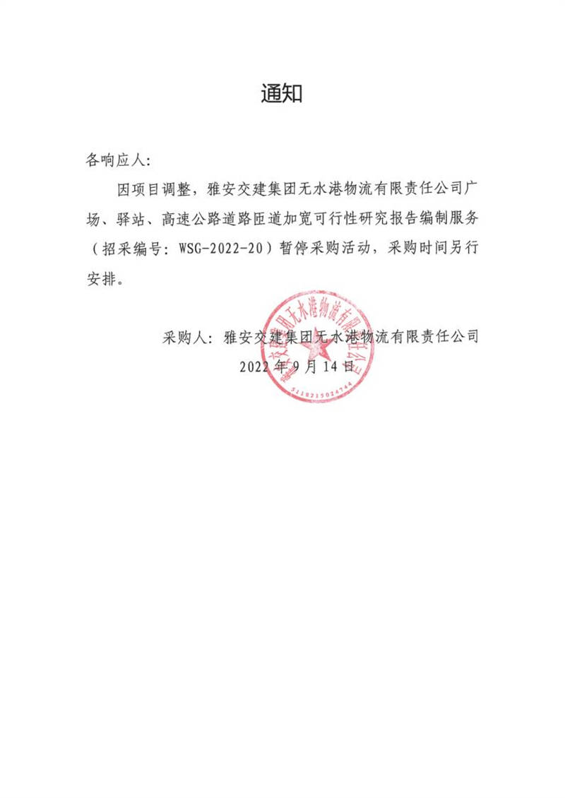 雅安交建集團(tuán)無水港物流有限責(zé)任公司廣場、驛站、高速公路道路匝道加寬可行性研究報告編制服務(wù)采購?fù)ㄖ?/h1>