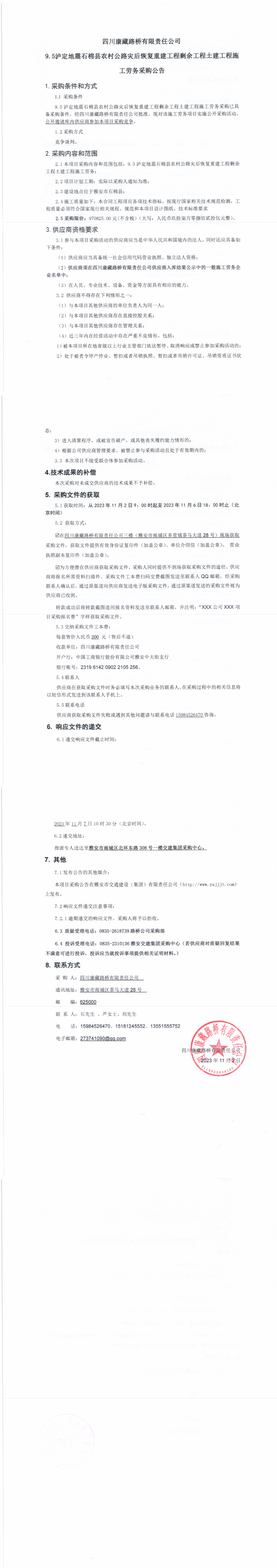 四川康藏路橋有限責任公司 9.5瀘定地震石棉縣農(nóng)村公路災后恢復重建工程剩余工程土建工程施工勞務采購公告