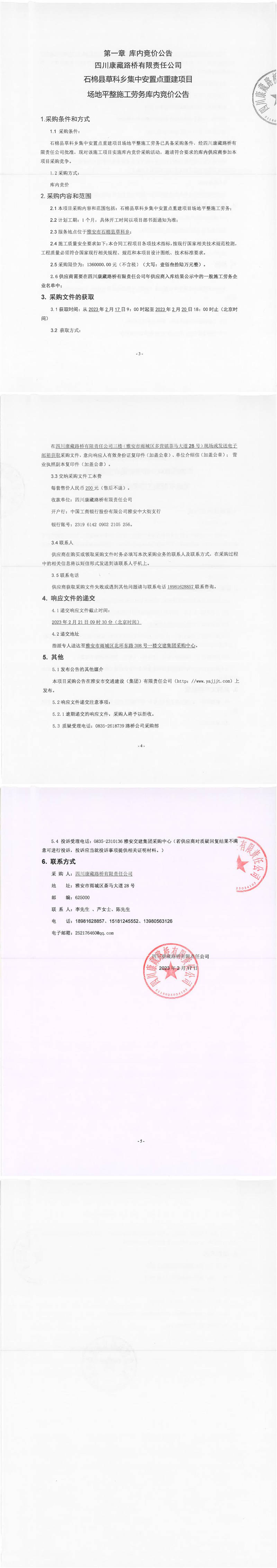 四川康藏路橋有限責(zé)任公司石棉草科鄉(xiāng)集中安置點(diǎn)重建項(xiàng)目場地平整施工勞務(wù)庫內(nèi)競價(jià)公告