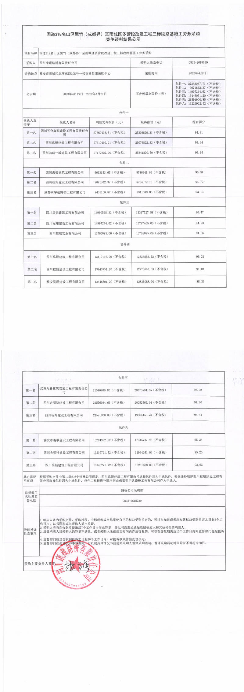 四川康藏路橋有限責(zé)任公司國道318名山區(qū)黑竹(成都界)至雨城區(qū)多營段改建工程三標(biāo)段路基施工勞務(wù)采購競爭談判結(jié)果公示