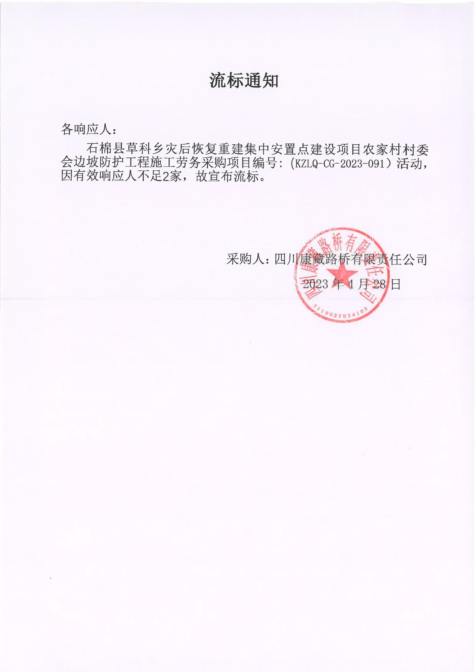 四川康藏路橋有限責任公司石棉草科鄉(xiāng)災后恢復重建集中安置點建設項目農家村村委會邊坡防護工程施工勞務流標通知