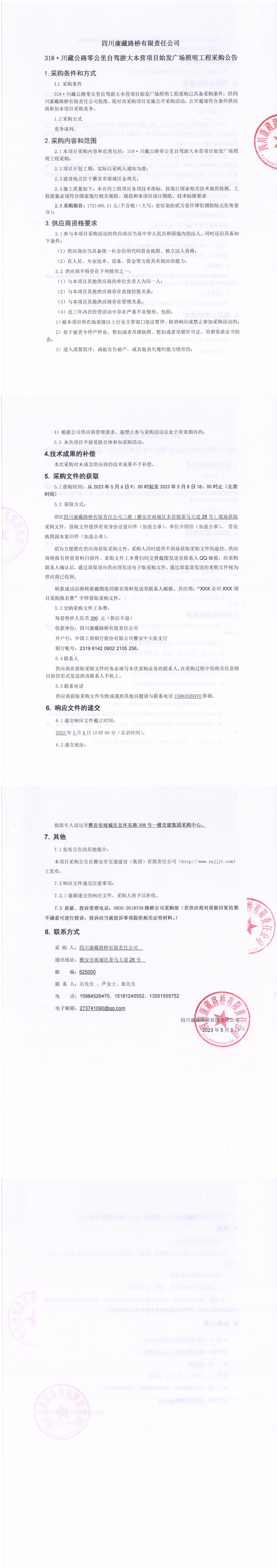 四川康藏路橋有限責(zé)任公司318·川藏公路零公里自駕游大本營(yíng)項(xiàng)目始發(fā)廣場(chǎng)照明工程采購(gòu)公告