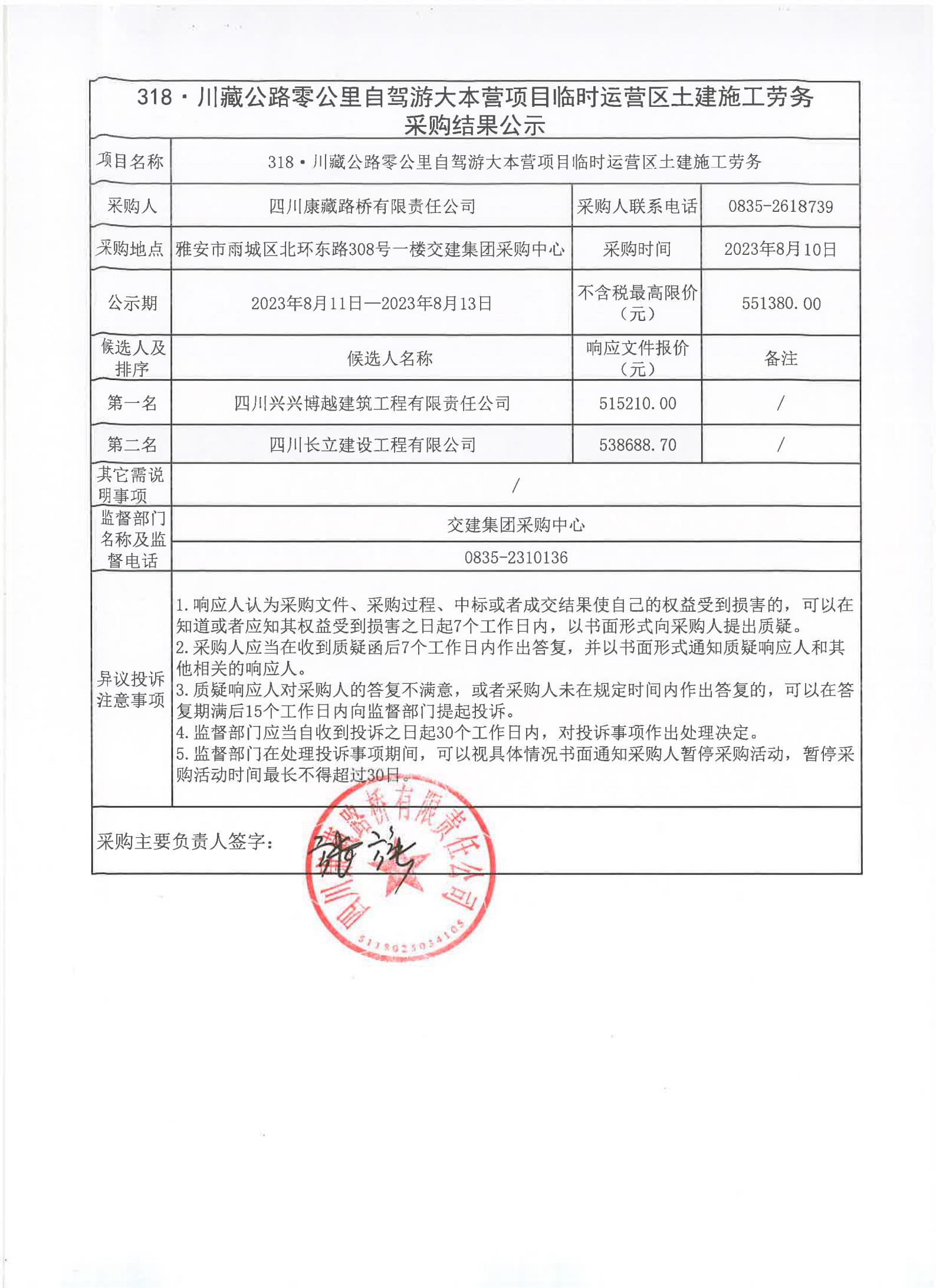 四川康藏路橋有限責(zé)任公司318·川藏公路零公里自駕游大本營(yíng)項(xiàng)目臨時(shí)運(yùn)營(yíng)區(qū)土建施工勞務(wù)采購(gòu)結(jié)果公示