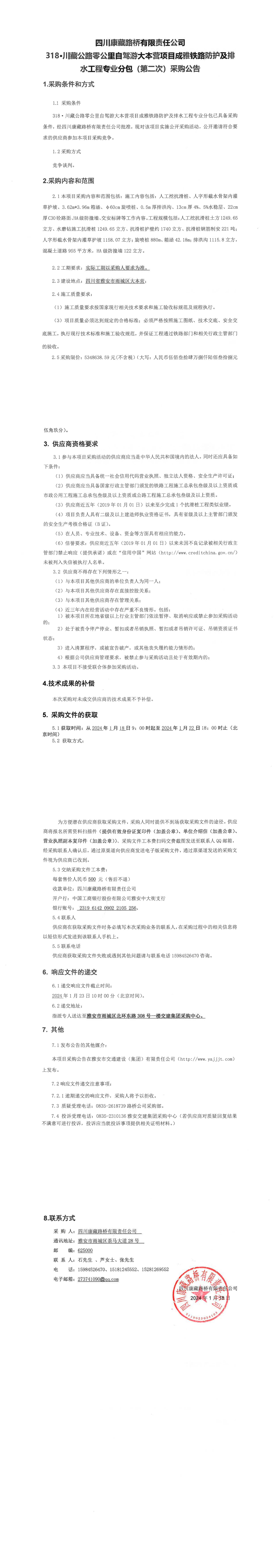 四川康藏路橋有限責(zé)任公司318·川藏公路零公里自駕游大本營項目成雅鐵路防護(hù)及排水工程專業(yè)分包(第二次)采購公告