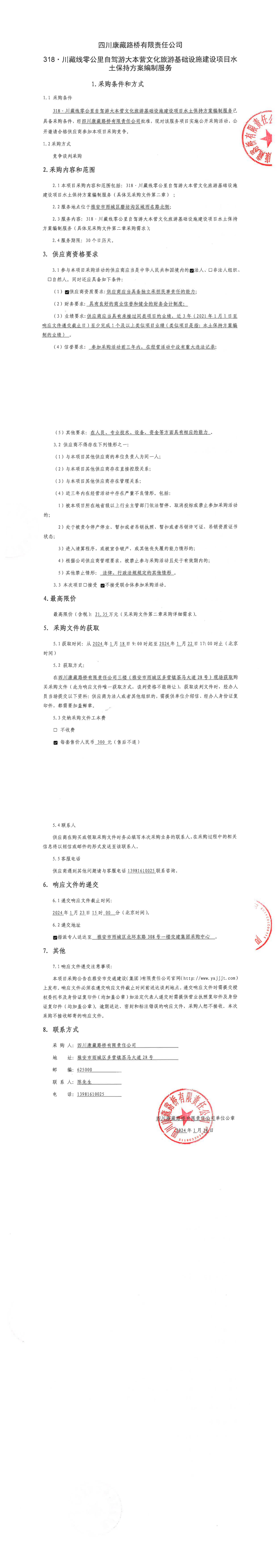 四川康藏路橋有限責(zé)任公司318·川藏線零公里自駕游大本營文化旅游基礎(chǔ)設(shè)施建設(shè)項目水土保持方案編制服務(wù)采購公告