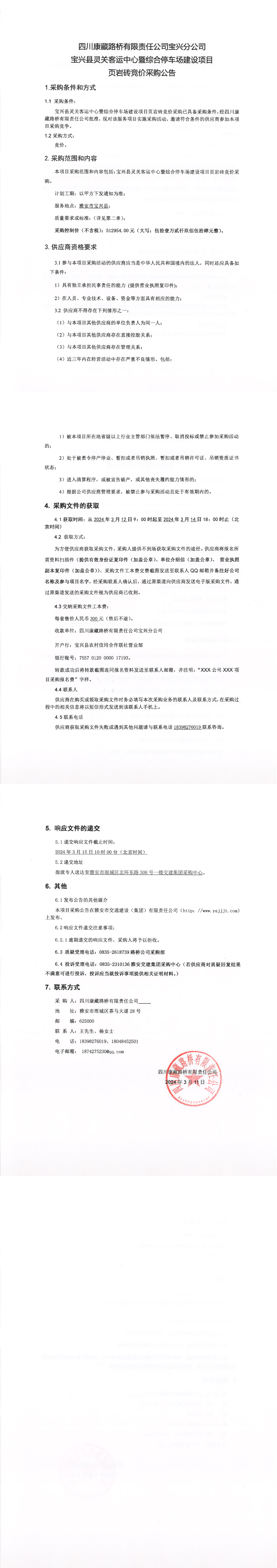 四川康藏路橋有限責(zé)任公司寶興縣靈關(guān)客運(yùn)中心暨綜合停車(chē)場(chǎng)建設(shè)項(xiàng)目頁(yè)巖磚競(jìng)價(jià)采購(gòu)公告