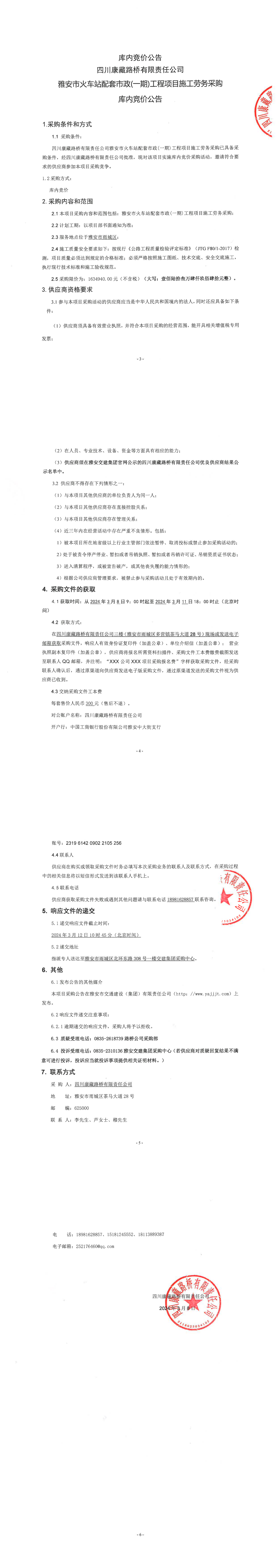 四川康藏路橋有限責(zé)任公司雅安市火車站配套市政(一期)工程項(xiàng)目施工勞務(wù)采購庫內(nèi)競(jìng)價(jià)公告