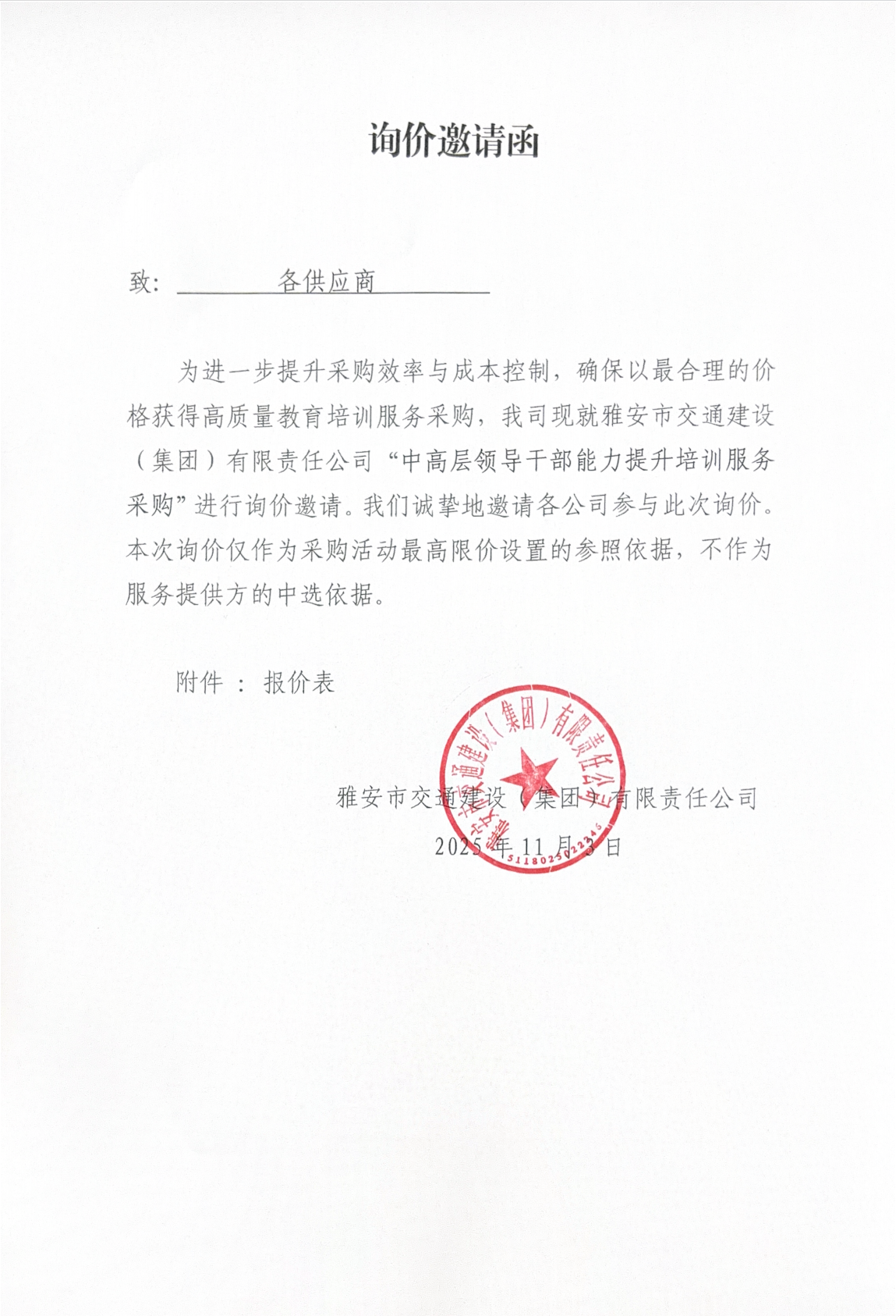 中高層領導干部能力提升培訓服務采購詢價邀請