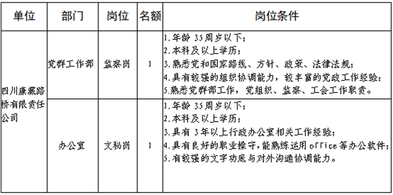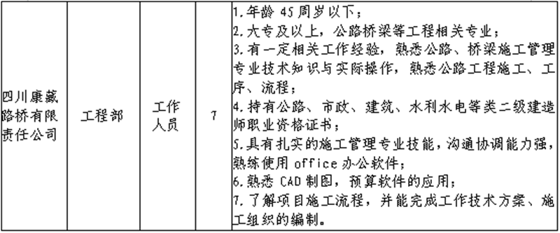 根據(jù)發(fā)展需要,決定面向社會(huì)公開招聘雅安市交通建設(shè)(集團(tuán))有限責(zé)任公司(以下簡稱“雅安交建集團(tuán)”)所屬子公司工作人員16名,現(xiàn)將有關(guān)事項(xiàng)公告如下: