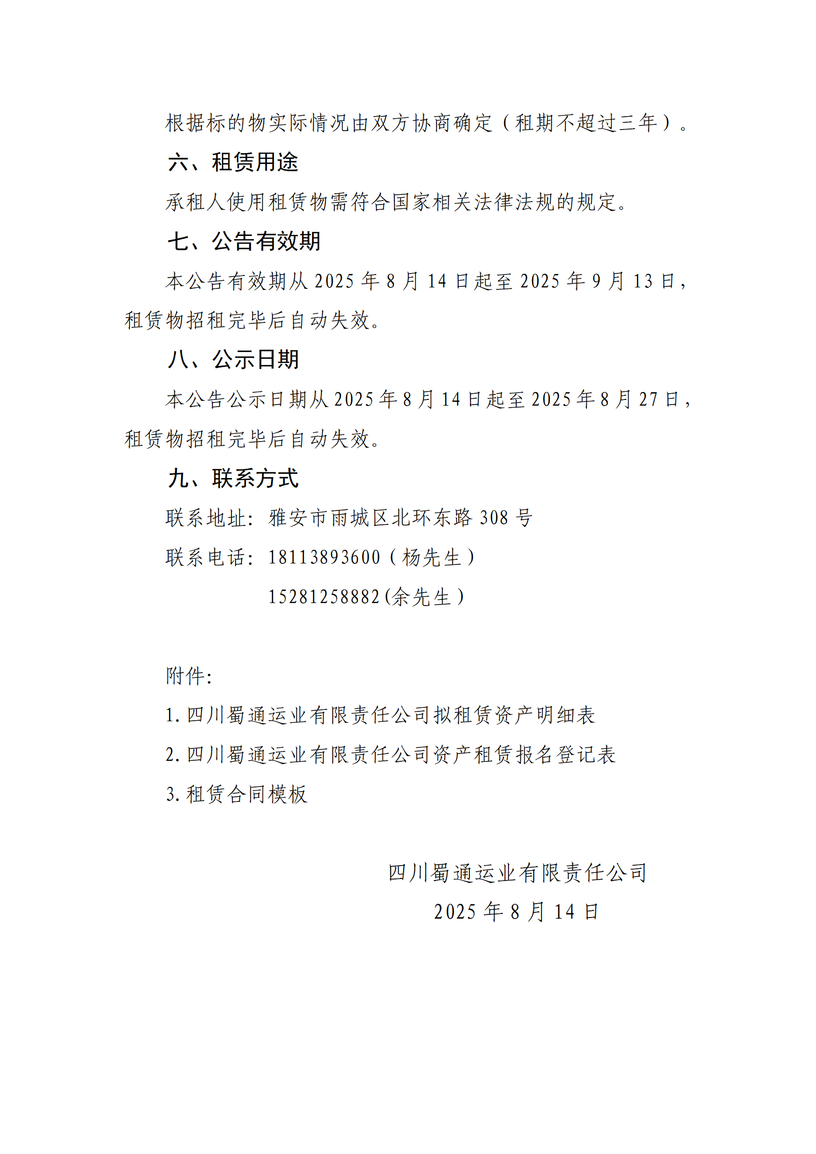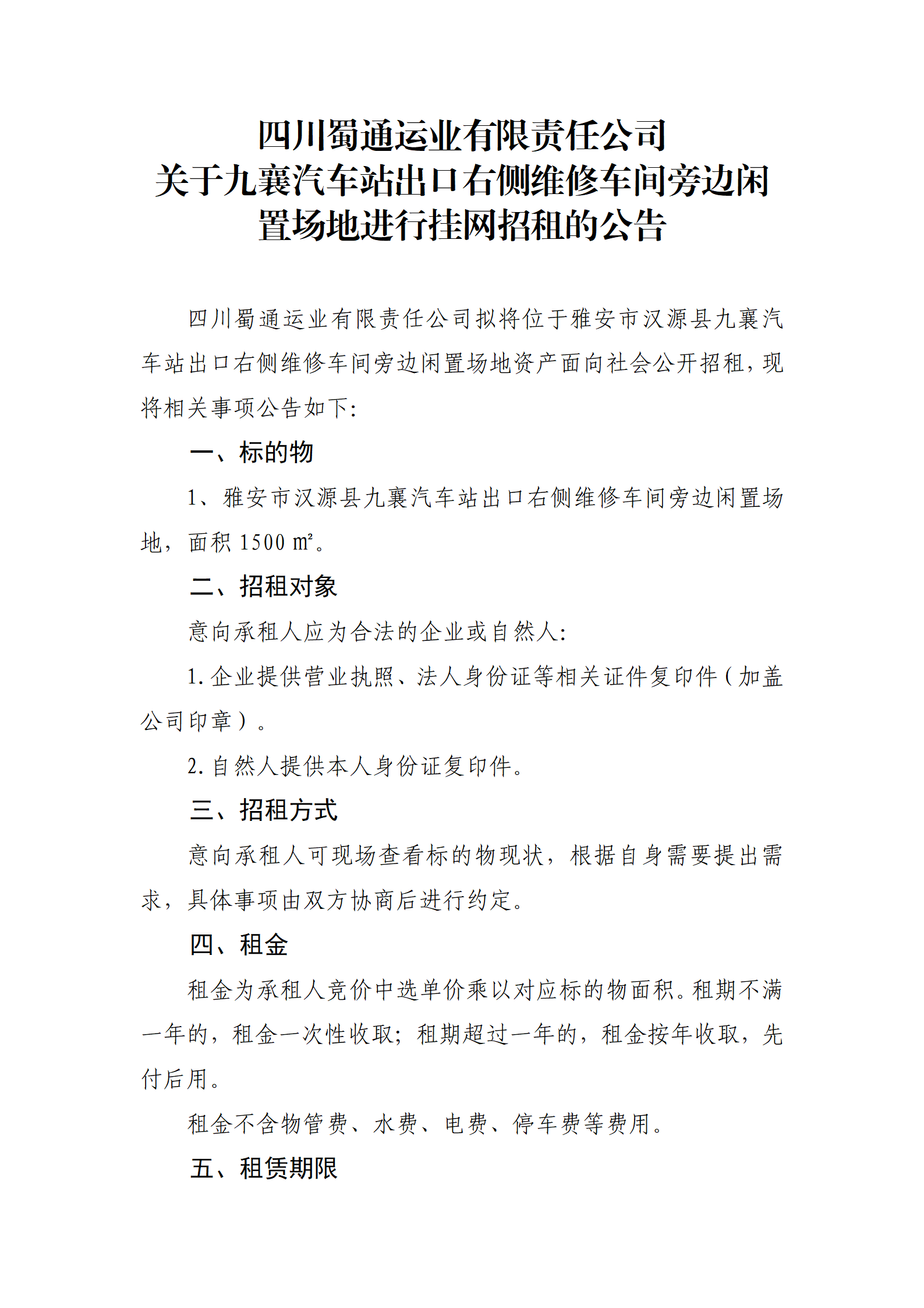 四川蜀通運業(yè)有限責任公司 關于九襄汽車站出口右側維修車間旁邊閑置場地進行掛網招租的公告